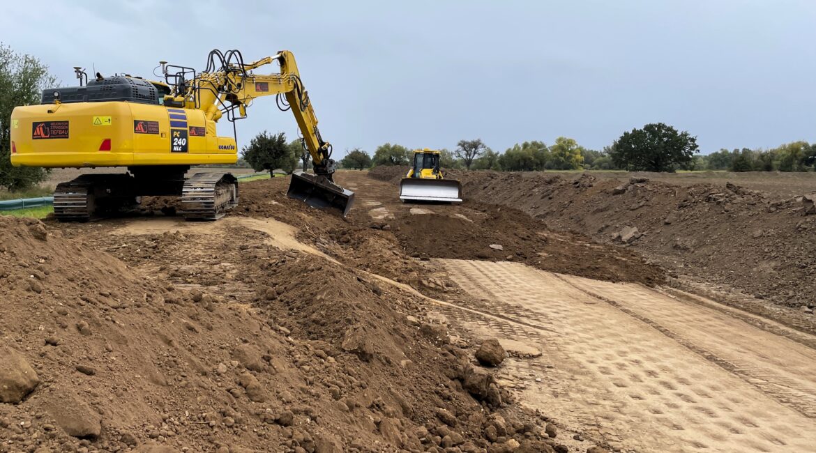 Auftraggeber: Landesbetrieb für Hochwasserschutz und Wasserwirtschaft HalleBauzeit: August 2025 - voraussichtlich August 2026Bausumme: 1.350.000 € nettoGewerke: Erdbauarbeiten, Landschaftsbauarbeiten, Asphaltbau, Wegebau, SpezialtiefbauKennzahlen: 26.000 m³ Bodenbewegungen8.800 m² Schotterrasen900 m² Spundwand11.600 m² Kombinationsgeokunststoff470 m Entwässerungsgraben14.500 m² Oberbodenbearbeitung und Rasenansaat2,8 km Deichverteidigungsweg in Asphaltbauweise9 Deichüberfahrten in Asphaltbauweise